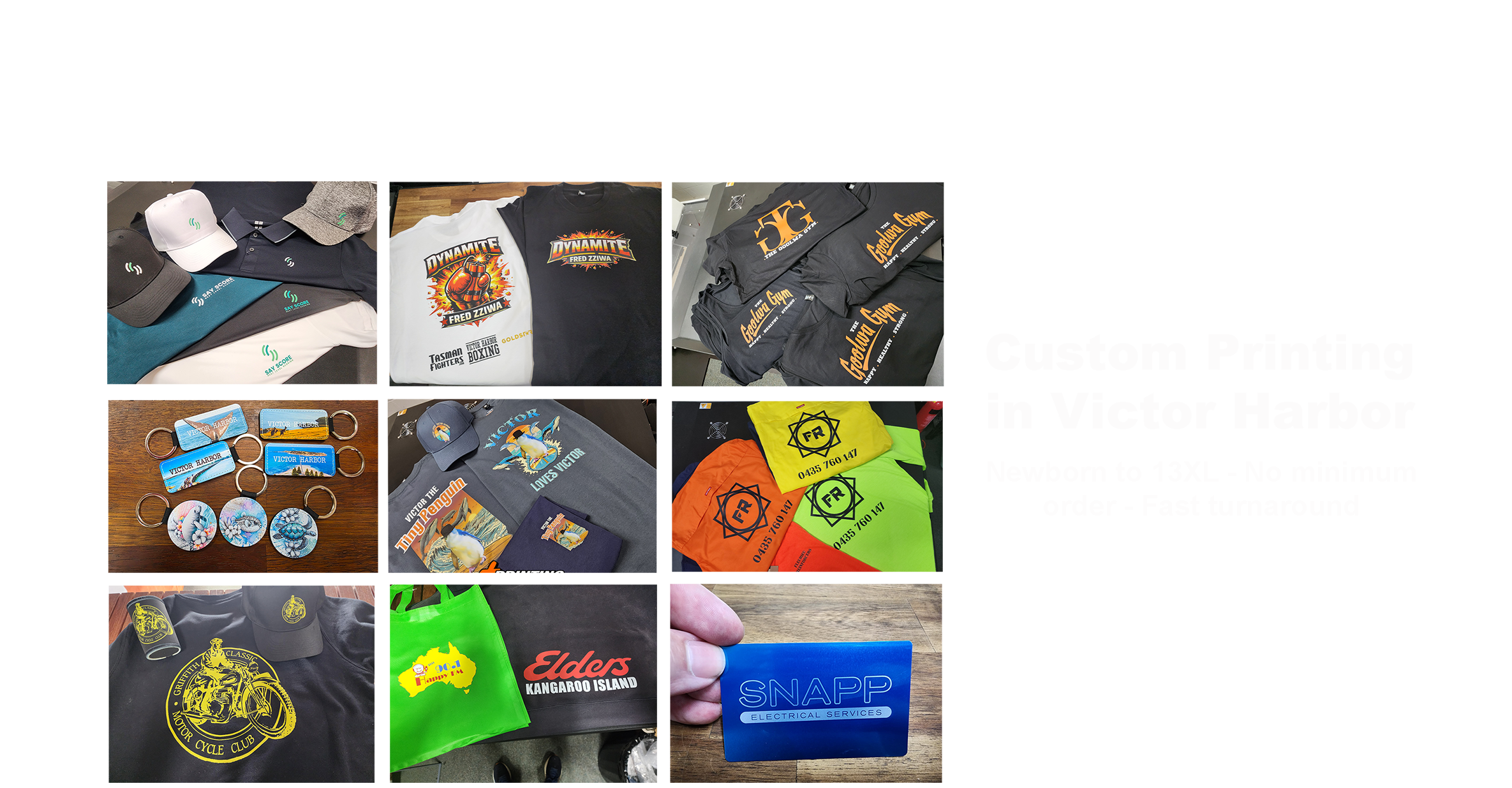 No minimum order — one item or a small run — and fast local service in Victor Harbor, with Australia-wide shipping available.
